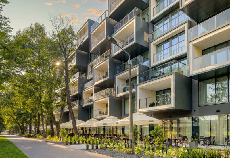 Facade shot of an exceptional 4-star hotel in Kraków – elegant and modern architecture that catches